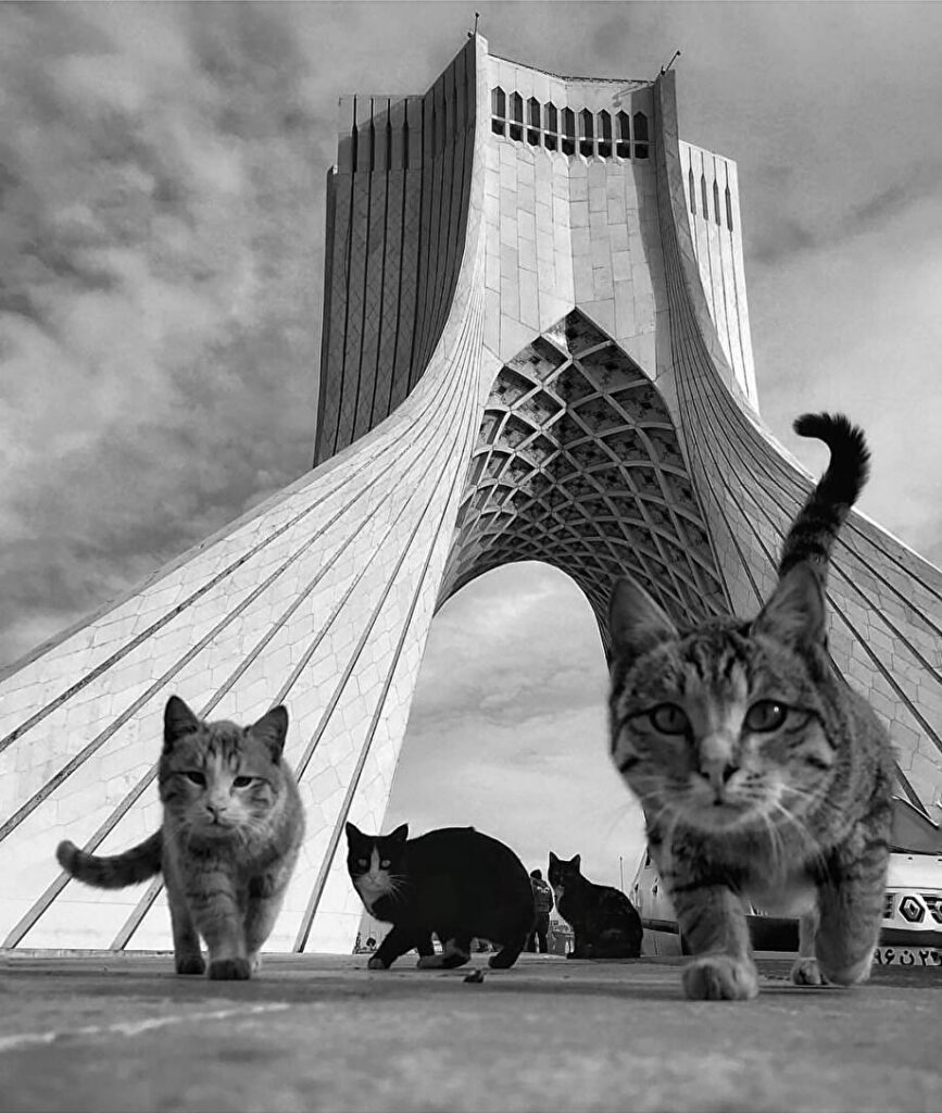 ※挿入画像:ゴレスターン宮殿 花の宮殿の異名を持つ:ペルシャ(イラン)の壮大さの永遠の象徴と、イランのテヘランにあるアザディタワーの周辺を自由に探索する猫たち